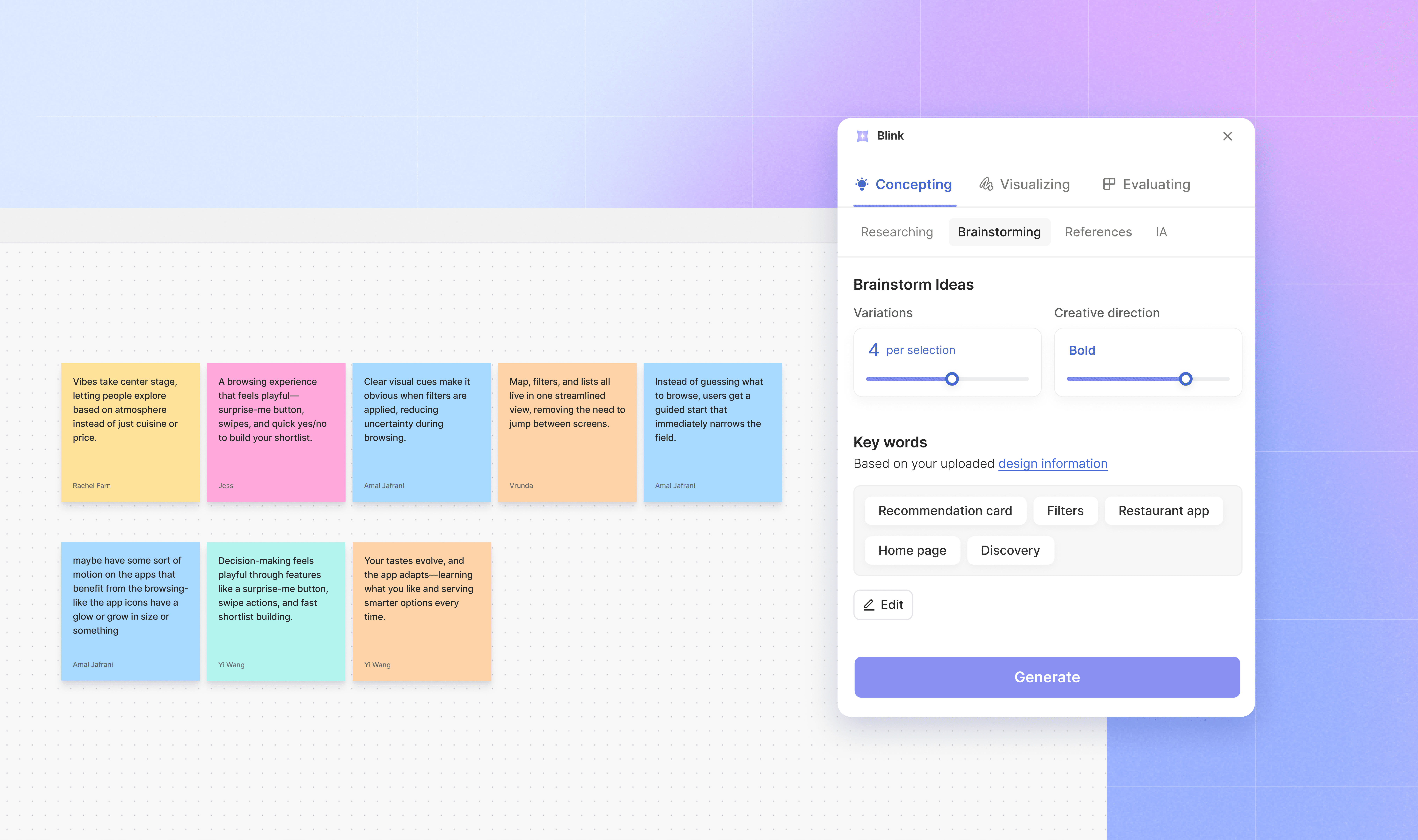 An AI-powered Figma plugin that can facilitate the ideation process by helping designers generate concepts and visualize ideas to sketches.